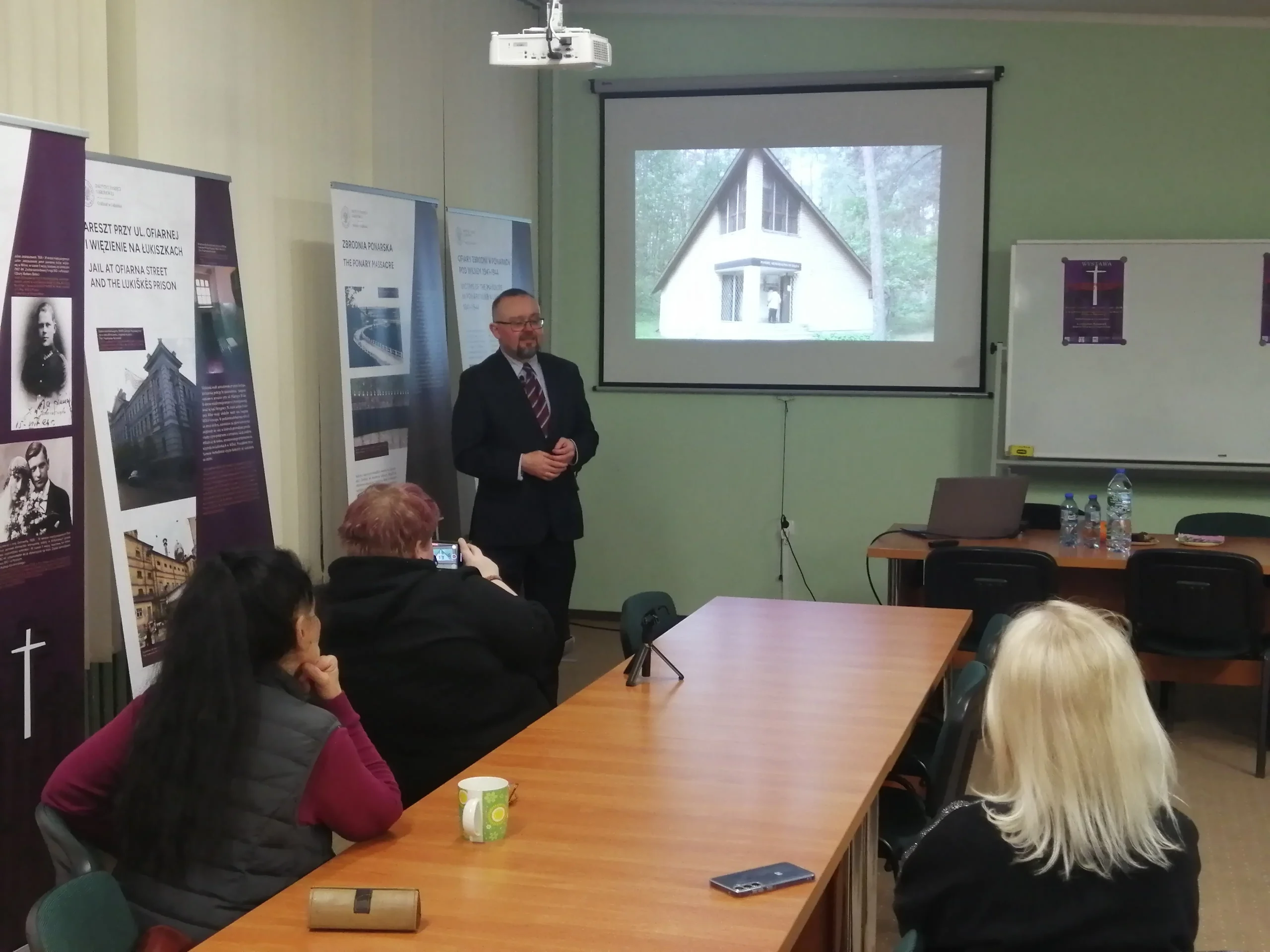 Podczas wernisażu autor wystawy wiceprezes Stowarzyszenia Rodzina Ponarska Przemysław Namsołek wygłosił wykład, podczas którego omówił przebieg Zbrodni Ponarskiej oraz przedstawił ofiary i sprawców mordów. W drugiej części wystąpienia zaprezentował działalność Stowarzyszenia Rodzina Ponarska, ponadto opowiedział o koncepcji i kolejnych etapach powstania wystawy.