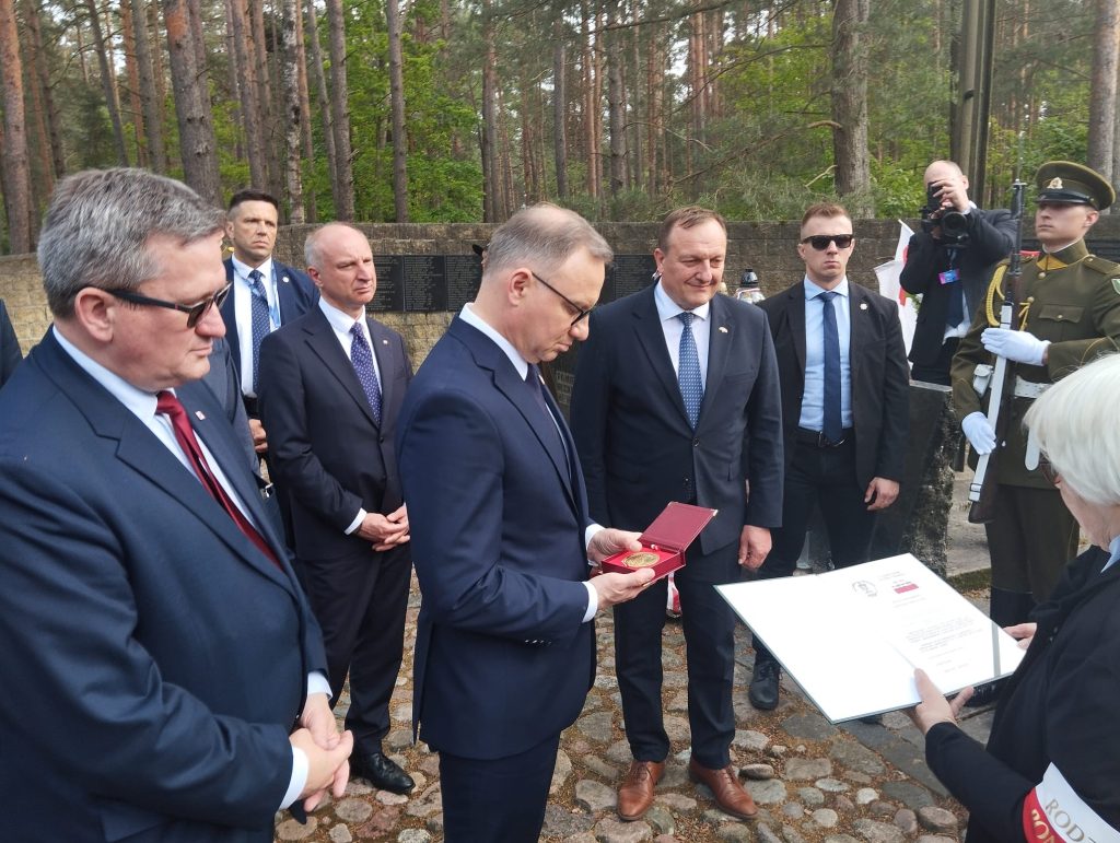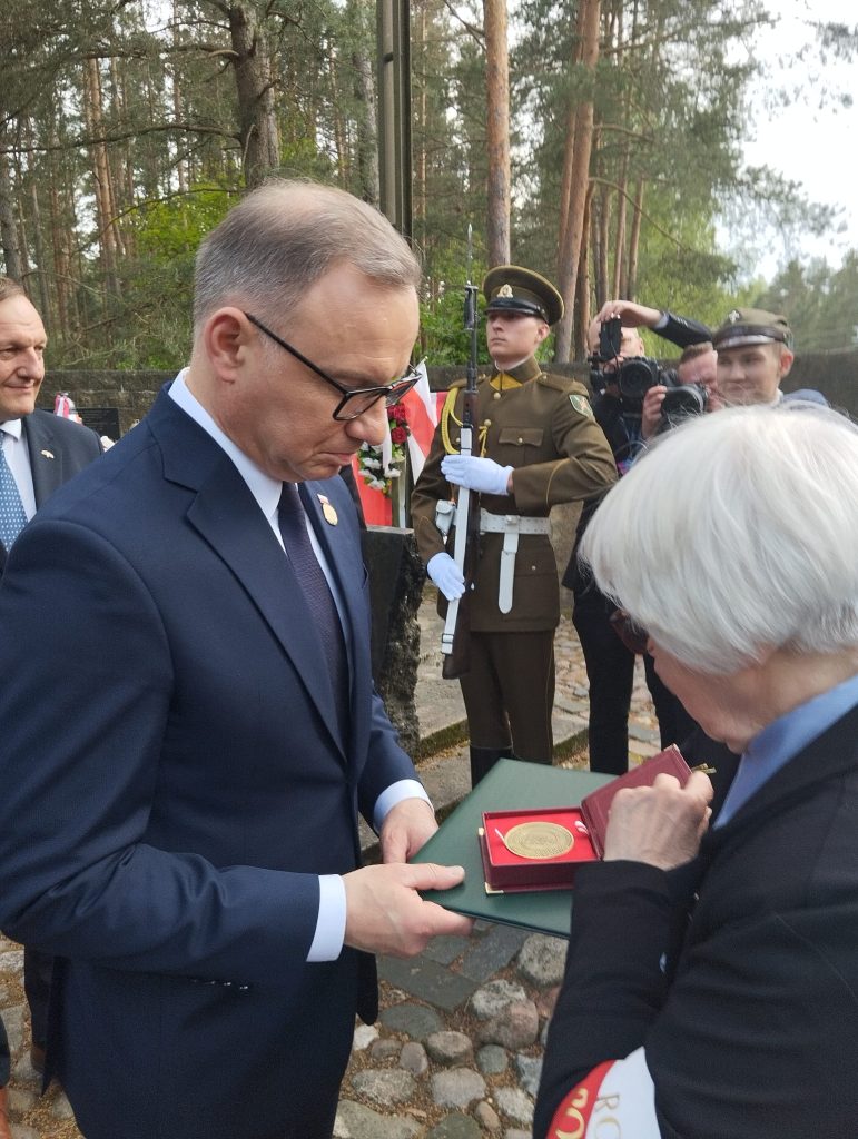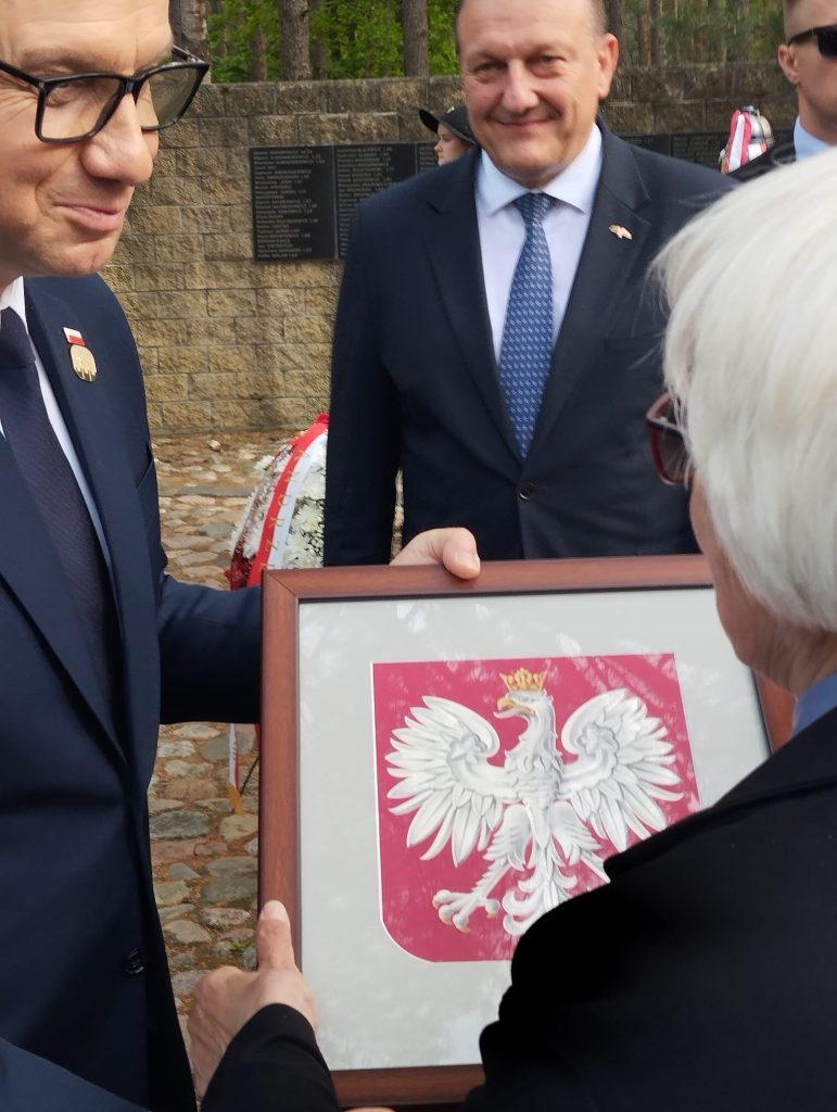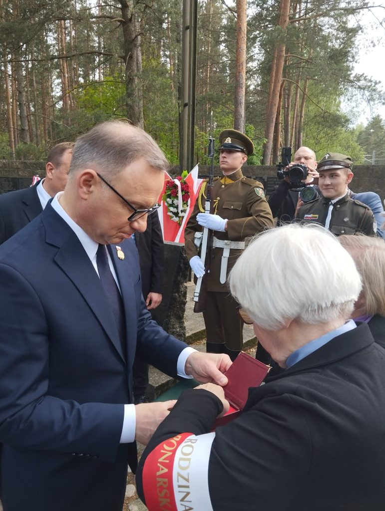 Wilna oraz hm. Wiesława Turzańskiego z Warszawy.Wręczył stowarzyszeniu Godło Polski z tabliczką Prezydenta oraz wieczne pióro z nadrukiem, natomiast Andrzej Duda otrzymał od Rodziny Ponarskiej medal okolicznościowy, wydany z okazji 30-lecia stowarzyszenia z listem gratulacyjnym, broszury ponarskie, Dziennik 1941-1943 Kazimierza Sakowicza oraz Katalog pierwszej Wystawy Ponarskiej wydanej przez IPN.