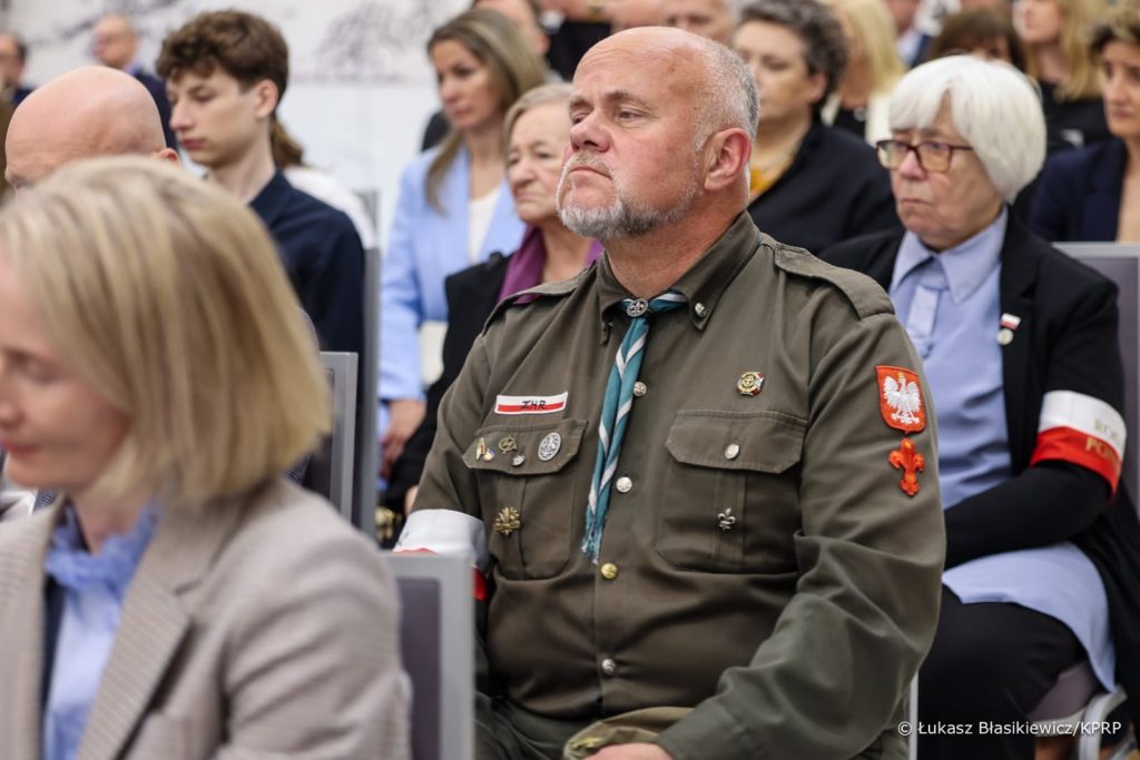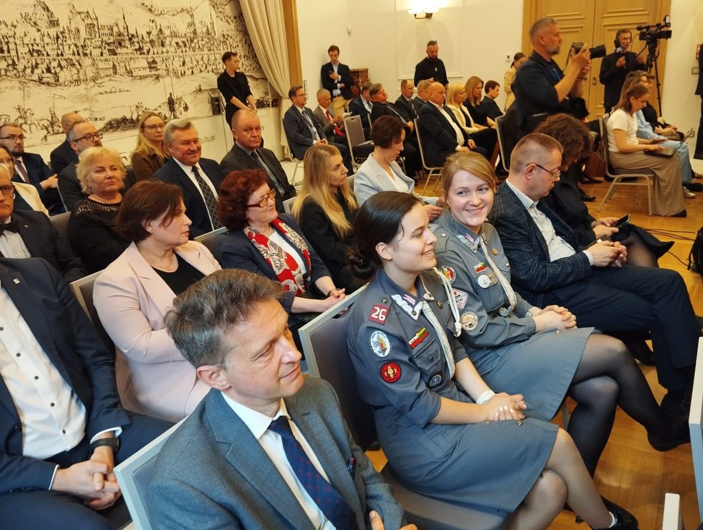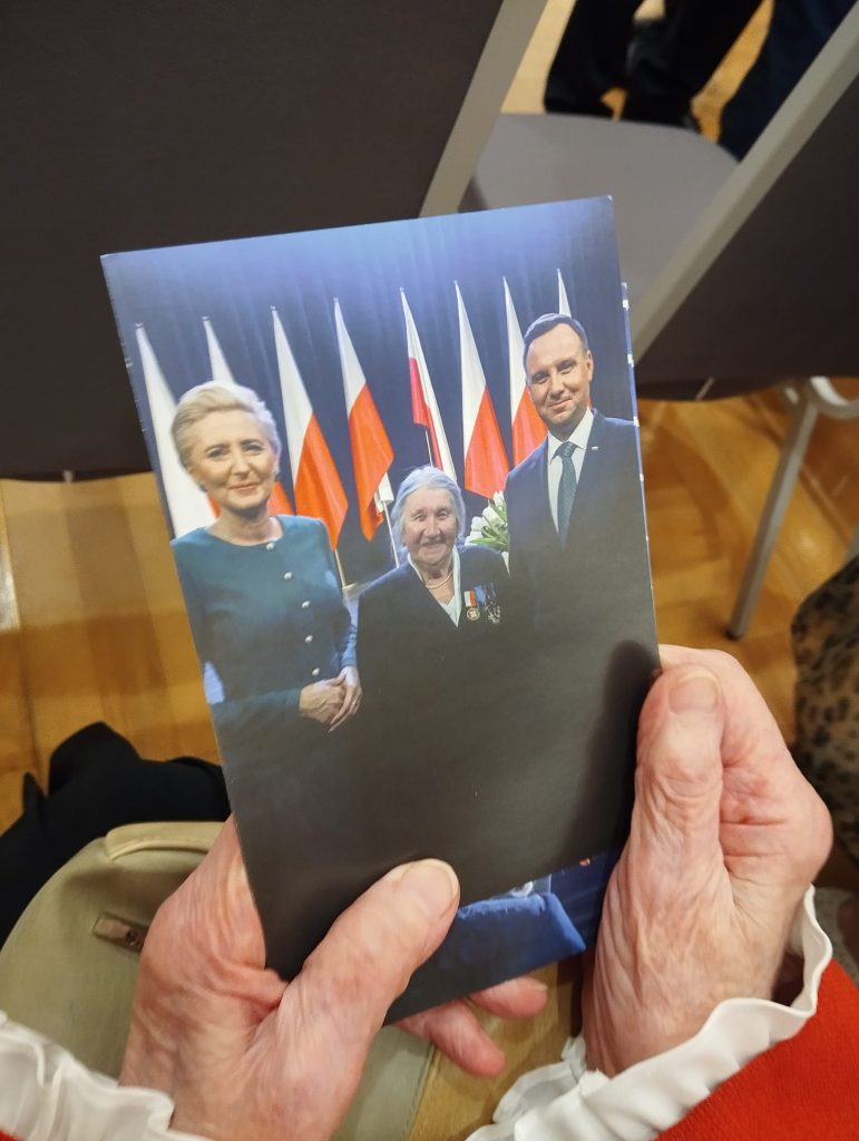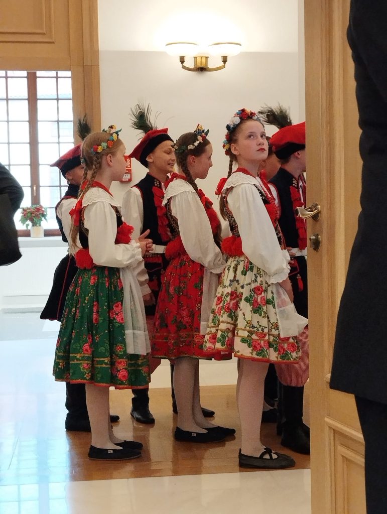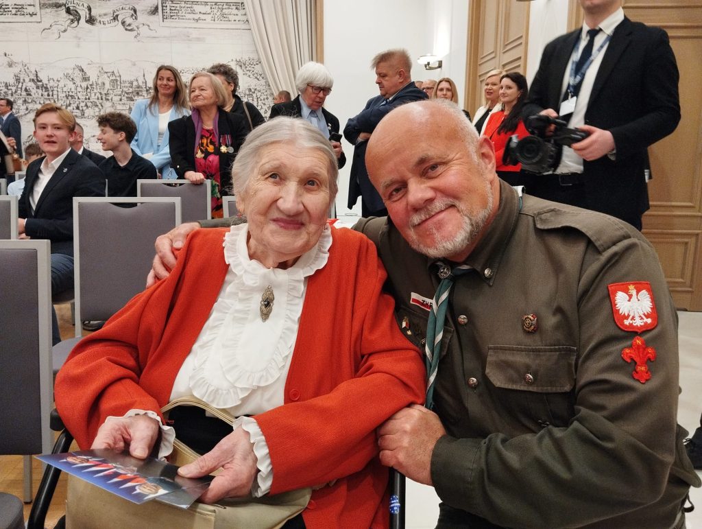 Szkół Polskich na Litwie „Macierz Szkolna”. Bardzo bogaty występ Dziecięco-Młodzieżowego Zespołu „Sto Uśmiechów” został gorąco przyjęty przez wszystkich gości. Potem długo trwały osobiste spotkania i rozmowy z przedstawicielami wszystkich środowisk polskich działających na Litwie, w tym harcerzy. Wtedy też Maria Wieloch jeszcze raz podziękowała prezydentowi Andrzejowi Dudzie za wizytę w Ponarach i wręczyła mały znaczek – przypinkę z naszym logo.