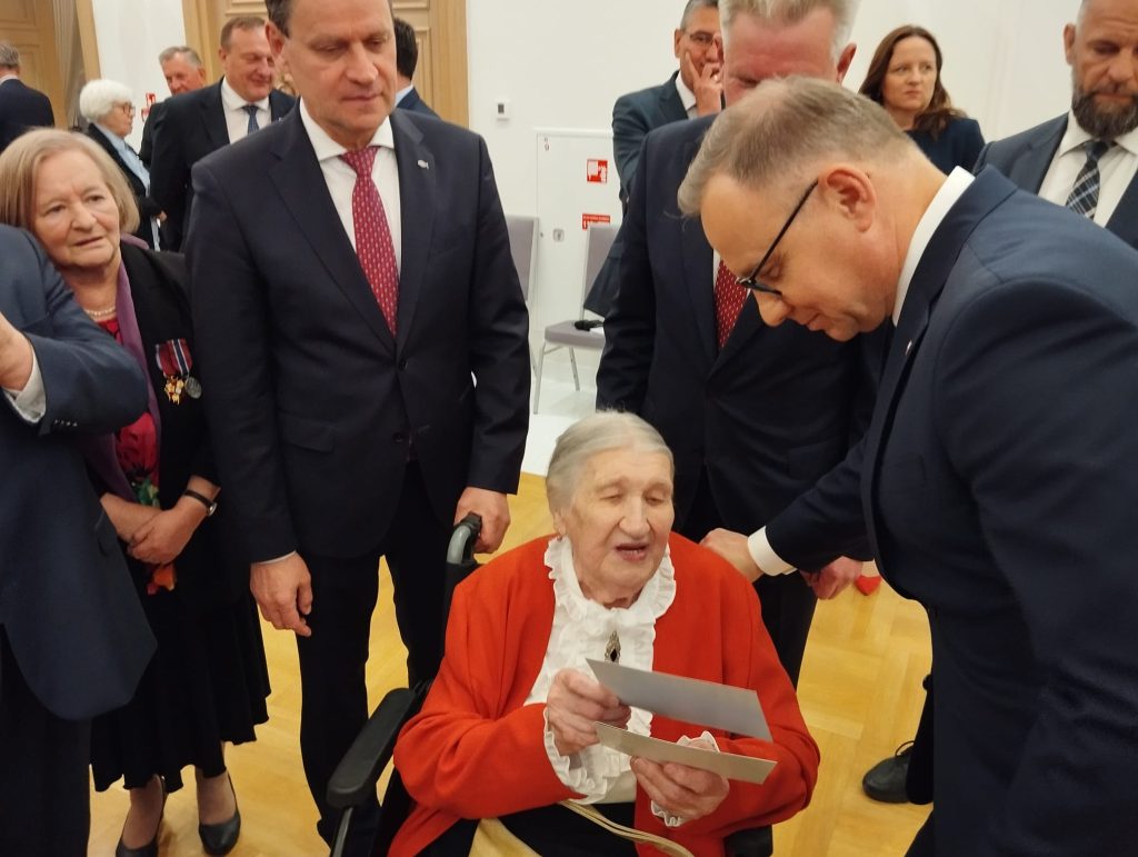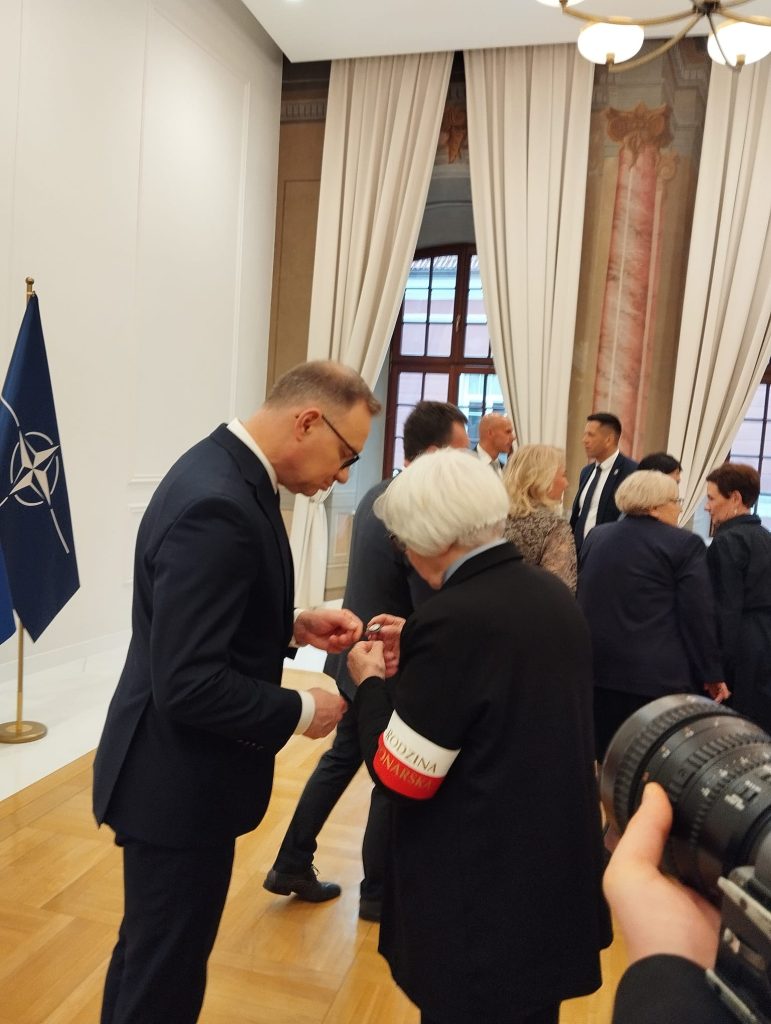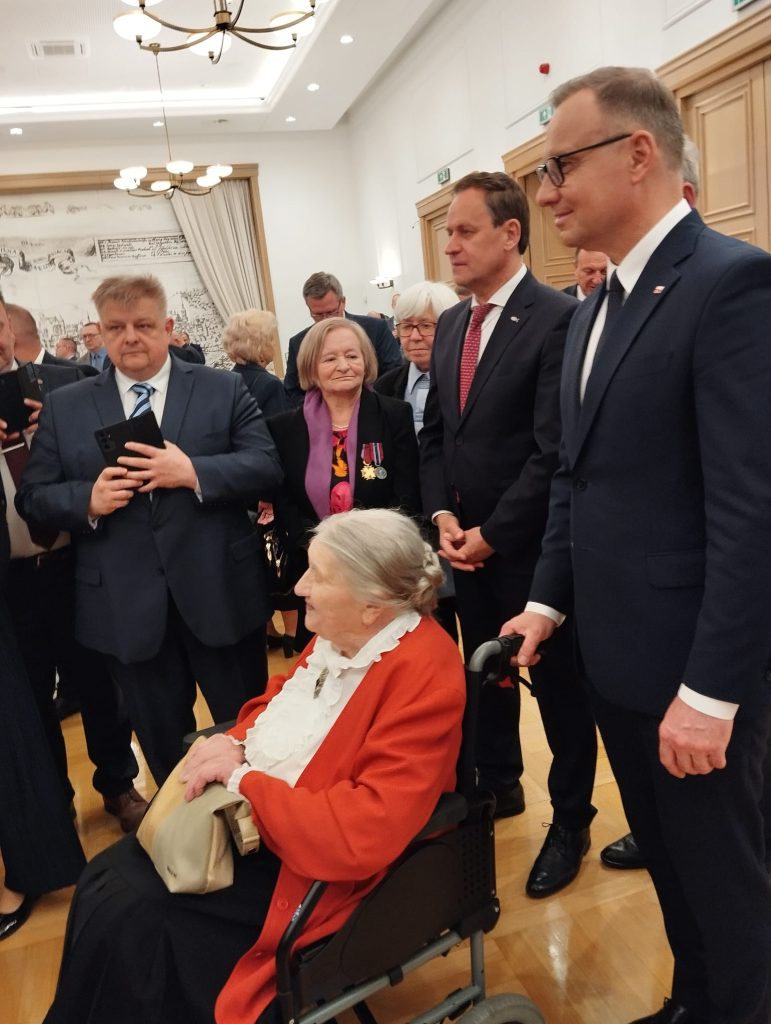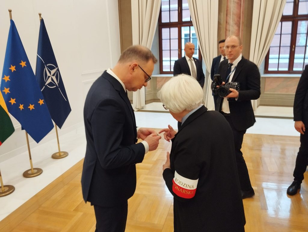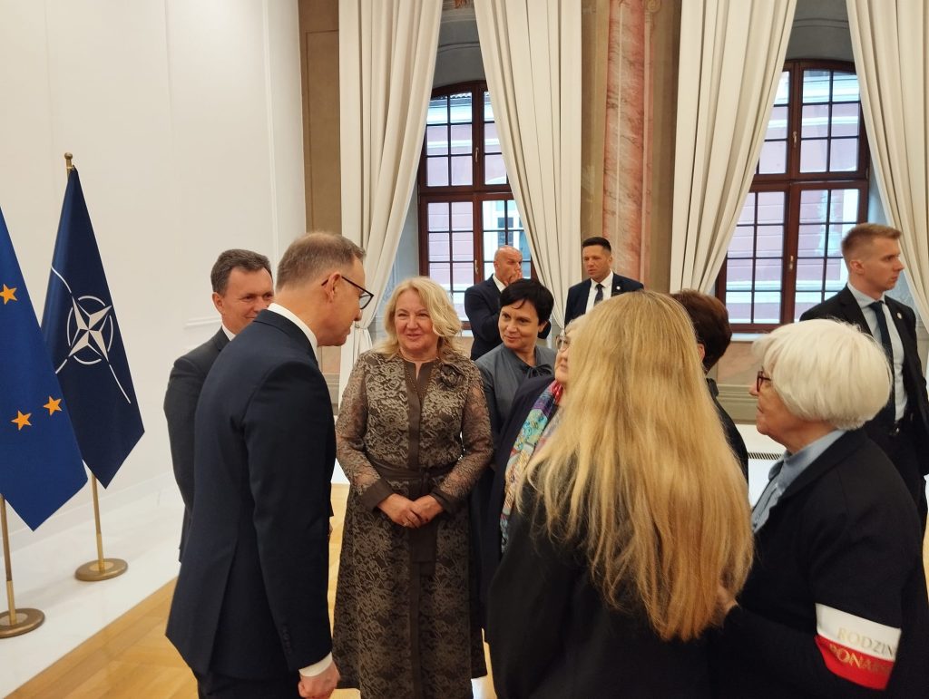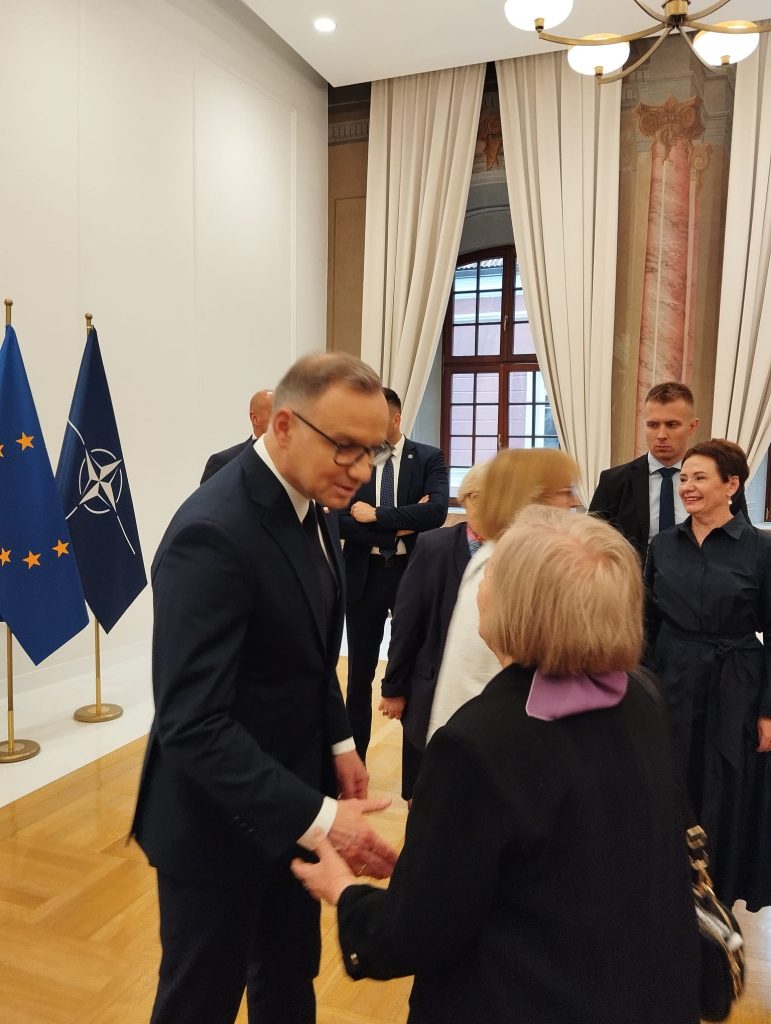 Po złożeniu wieńca i chwili zadumy w Kwaterze Polskiej Pan Prezydent podszedł do przedstawicieli Rodziny Ponarskiej: prezes stowarzyszenia Marii Wieloch, dr Krystyny Rotkiewicz z